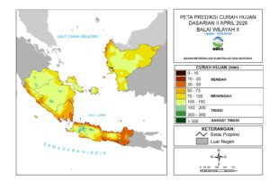 Curah hujan Dasarian II Juni – I Juli 2024 diprakirakan pada kategori Rendah – Menengah (0-100 mm/dasarian). Curah hujan dengan kategori Rendah (0-10 mm/dasarian) diprakirakan terjadi di sebagian kecil wilayah Jawa Tengah pada Dasarian II Juni 2024; serta di wilayah Banten, DKI Jakarta, Jawa Barat, Jawa Tengah, dan D.I. Yogyakarta pada Dasarian III Juni – I Juli 2024.