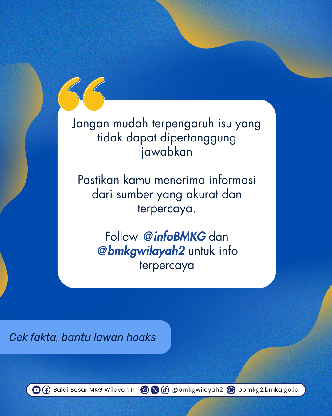 Sebagai penutup, BMKG mengajak masyarakat untuk tidak mudah terpengaruh isu yang tidak dapat dipertanggungjawabkan. Pastikan informasi yang diterima berasal dari sumber resmi dan terpercaya.
